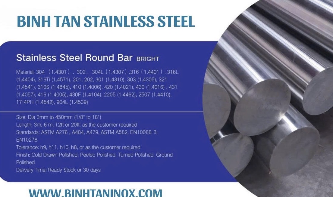 JIS G4303 là tiêu chuẩn Nhật Bản áp dụng cho thép không gỉ dạng thanh tròn, thanh đặc, nổi tiếng với dung sai chặt, độ tròn cao, bề mặt đồng đều và chất lượng ổn định giữa các lô.
